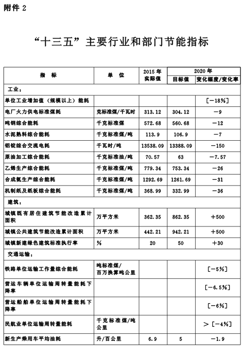 2.“十三五”主要行业和部门节能指标附件1