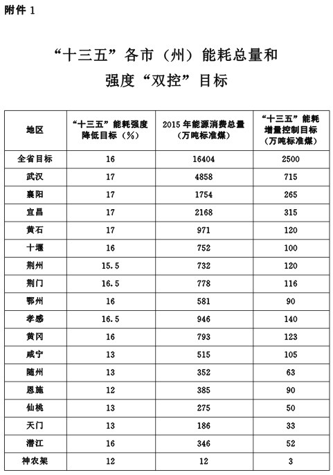 湖北省“十三五”节能减排综合工作方案